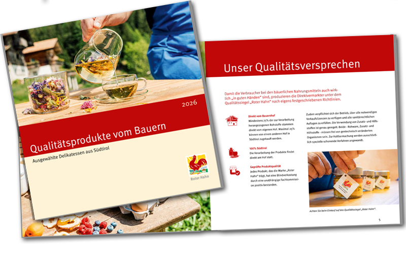 Wil je op je gemak bladeren door het boerenleven van Zuid-Tirol? Van de mooiste vakantieboerderijen en geselecteerde kwaliteitsproducten tot uitnodigende boerencafés en unieke ambachtslieden - er zijn vier catalogi om uit te kiezen.