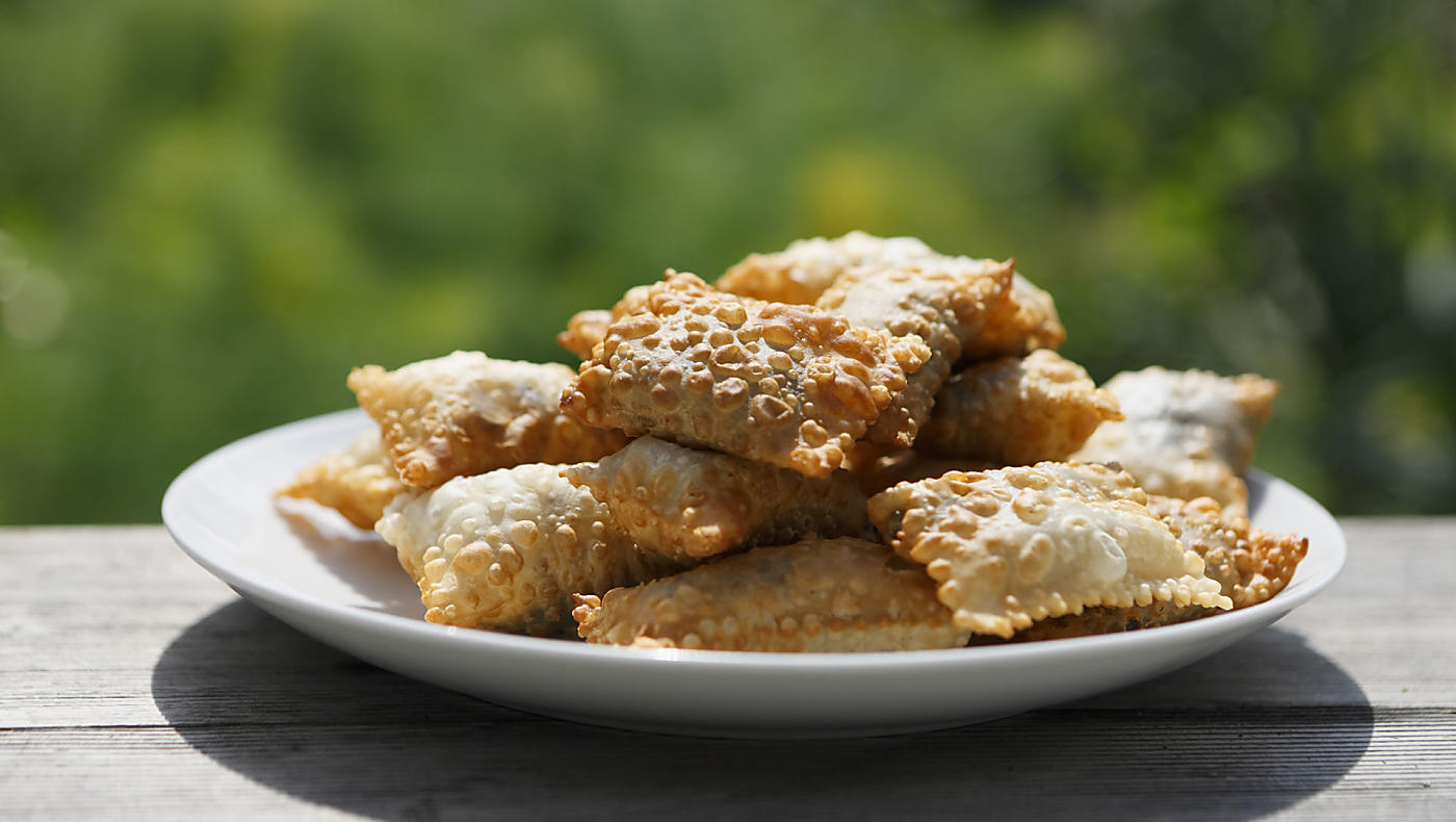 StapVyválejte libovolně velké oválné pláty těsta, doprostřed dejte lžíci marmelády a přeložte je k sobě. Okraje okrojte rádlem na těsto a taštičky usmažte na rozpáleném tuku. -