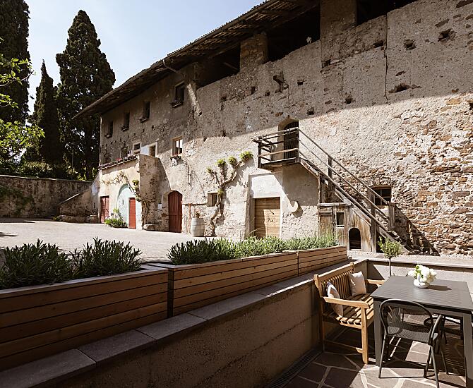 Ons liefdevol gerenoveerde vakantiehuis ligt gedeeltelijk in de idyllische binnenplaats van onze Ansitz Pastreinbach en opent zich aan de westkant met een prachtig uitzicht op het omringende wijngaardlandschap en de Mendelberg. Het heeft directe toegang tot grote tuin vol bloeiende bloemen, struiken en fruitbomen, en de nieuw aangelegde wijngaard.