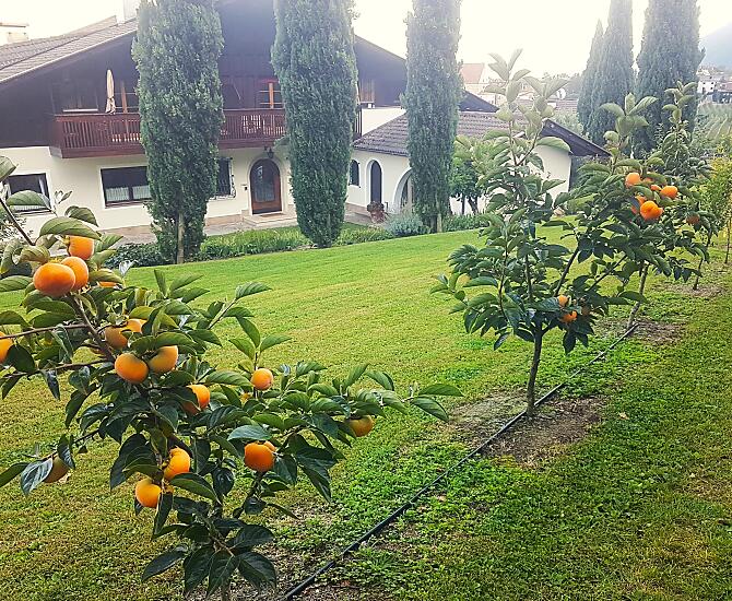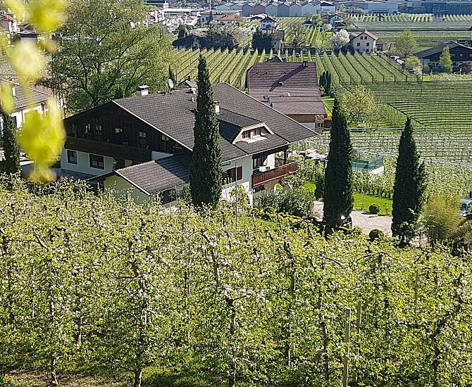 Onze fruitboerderij is gelegen in de wijk St. Margarethen in Niederlana, rustig maar toch zeer centraal. Het prachtige uitzicht op de omliggende bergen is vooral goed te bewonderen vanaf onze ruime en volledig ingerichte balkons. Als fruittelers produceren we verschillende soorten fruit, zoals kersen, abrikozen, zwarte en rode bessen, evenals bosbessen en appels.