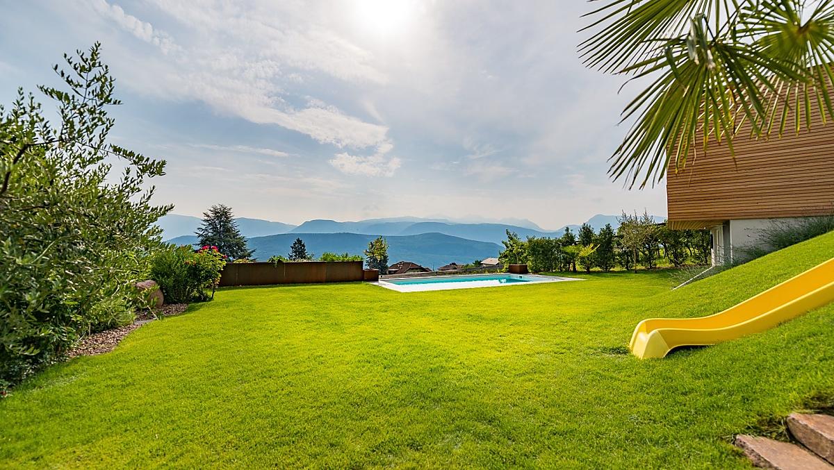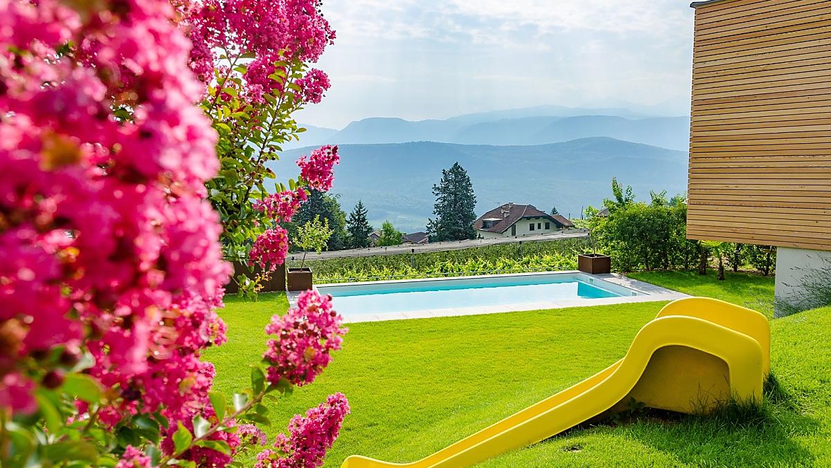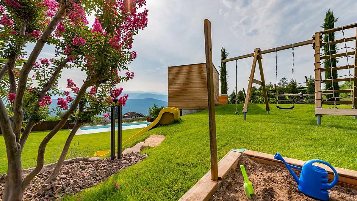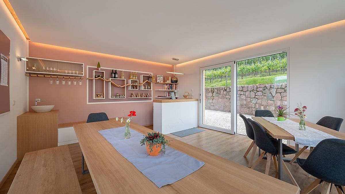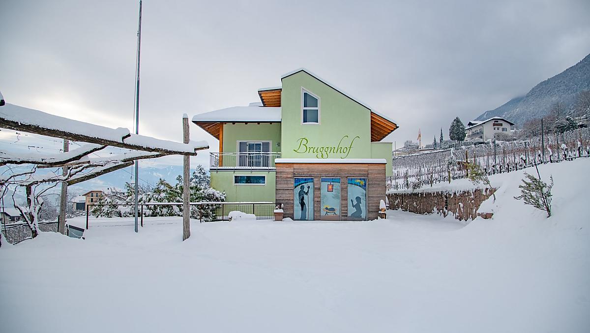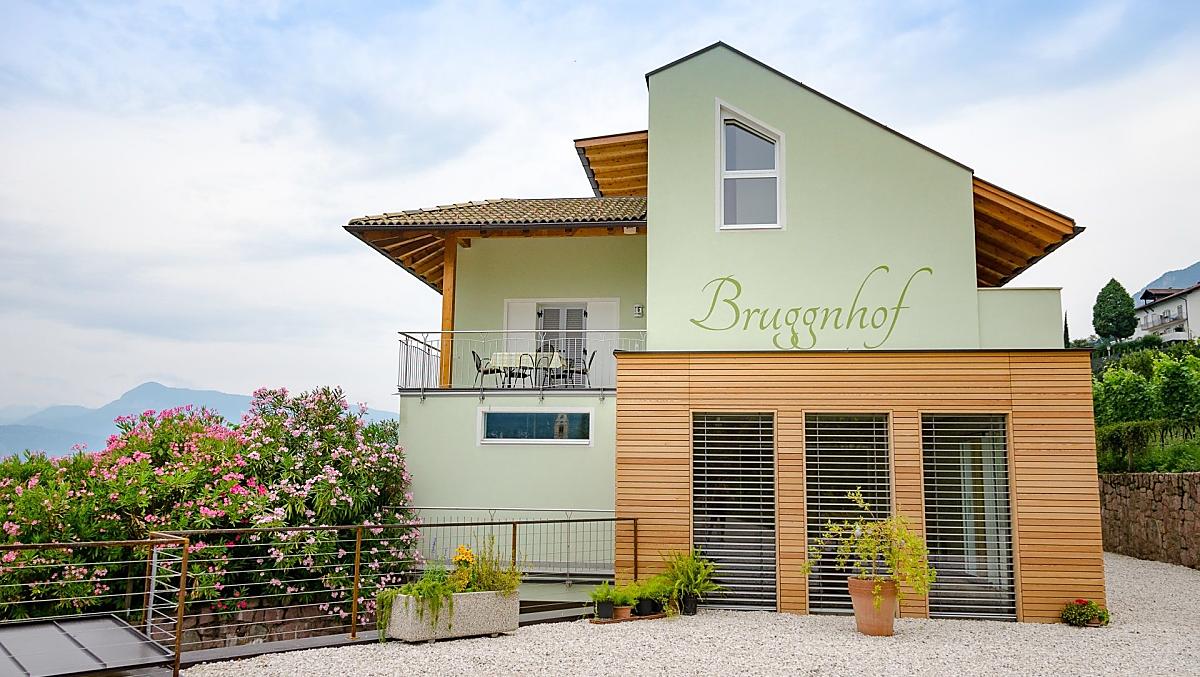Hier in Kaltern aan de Weinstraße met zijn mediterrane klimaat, waar de natuur met zijn prachtige bergtoppen, het warmste zwemmeer van de Alpen, wijnstokken, palmbomen, cipressen en olijfbomen een ware afwisseling biedt en meestal de lente wat vroeger laat beginnen en de herfst wat aansleept, vindt u een klein paradijs op aarde. Midden in dit alles ligt onze Bruggnhof. Onze fruit- en wijnboerderij ligt op een zeer rustige locatie midden in het groen. Onze ruime, liefdevol ingerichte vakantiewoningen maken van uw vakantie een belevenis. Vanaf de balkons, terrassen en de grote ligweide kunt u genieten van het prachtige panorama met uitzicht op de Dolomieten. De wijnkelder en de lounge zorgen voor plezier en welzijn.