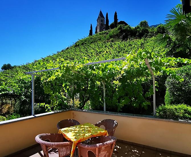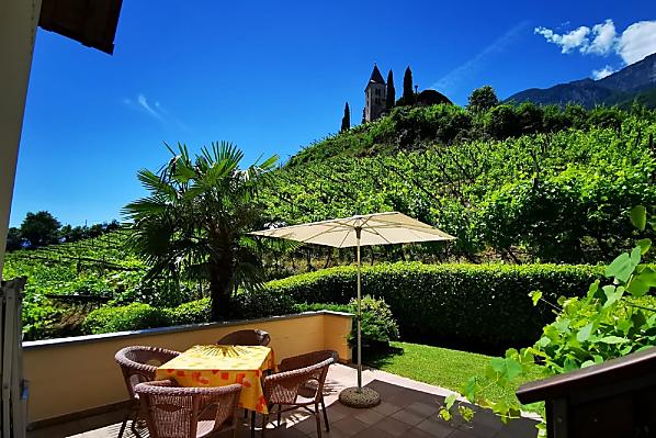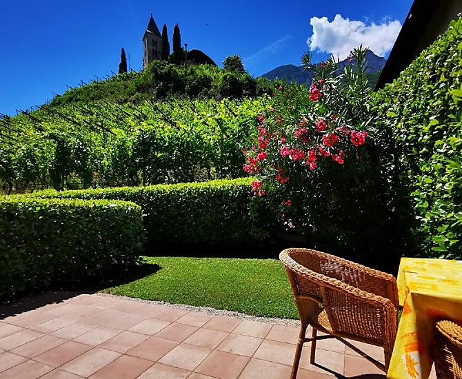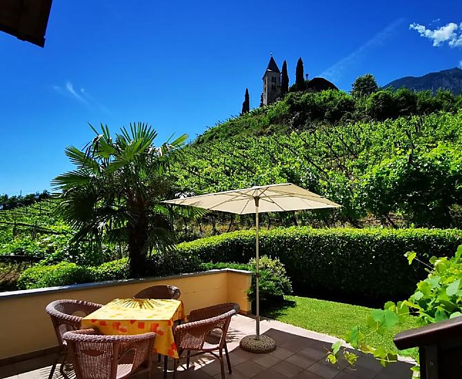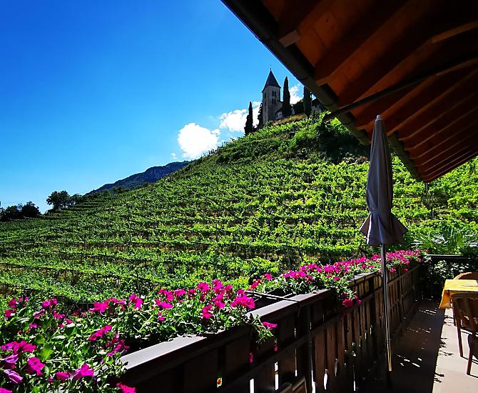 Onze vakantieboerderij ligt op een zonnige, rustige en centrale locatie, omgeven door wijngaarden, onder de heuvel Kastellaz in het midden van Tramin. Dit plekje in de loge met uitzicht op het romantische kerkje van St. Jakob, onze wijngaarden en het weidse Unterland zal elke gast versteld doen staan. Royale terrassen en balkons staan ter beschikking van onze gasten om te zonnebaden en te ontspannen. Ook de uitnodigende tuin met talloze mediterrane planten is een oase om je goed in te voelen. Trampoline, tafeltennis, schommel en zandbak zijn beschikbaar voor de kinderen. Parkeerplaatsen met automatische toegangspoorten zijn beschikbaar.