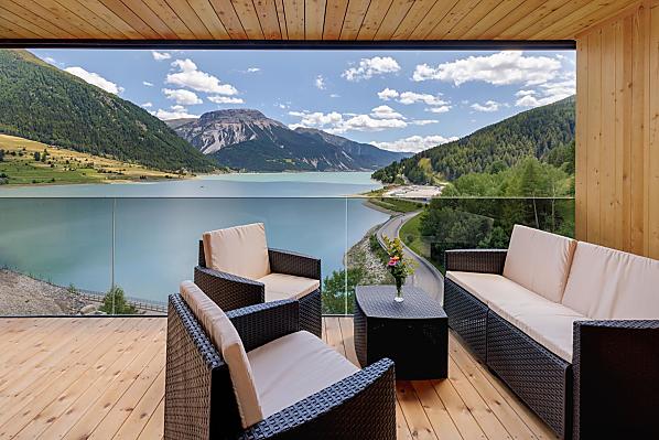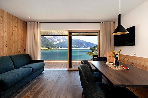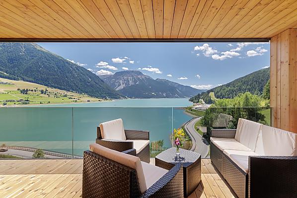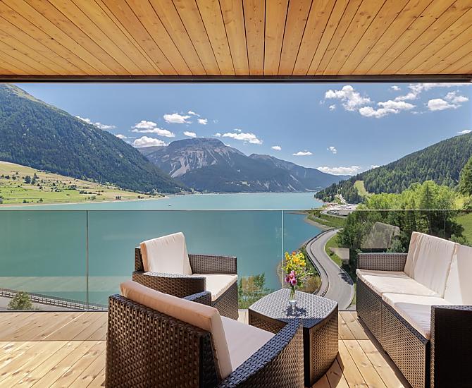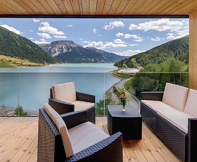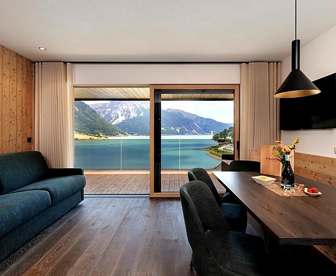 Een plek van verlangen in het Obervinschgau. Vrijheid. Rust. Panoramisch uitzicht. Dat alles belichaamt de Froihof aan de Reschensee.