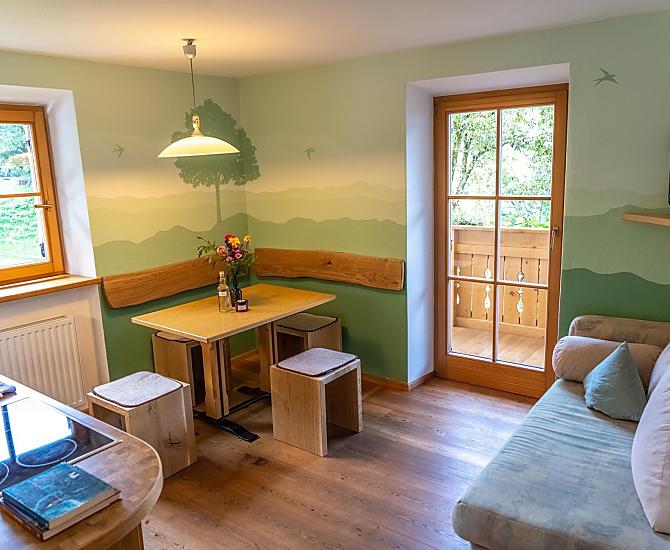Ontdek de Ganoihof – uw rustige toevluchtsoord midden in de natuur. Onze biologisch beheerde boerderij ligt aan de bosrand in het schilderachtige Dolomietendal Villnöss, op 1.100 meter hoogte, omringd door weiden en bomen. Weg van lawaai en drukte, en toch slechts een steenworp van het dorpscentrum van St. Peter verwijderd. Wij hechten veel waarde aan duurzame landbouw en een natuurlijke verzorging van het landschap, zodat u kunt genieten van een authentieke, milieubewuste en ontspannen vakantie. Rondom onze boerderij vindt u ruime, goed onderhouden plekken om te spelen of gewoon heerlijk tot rust te komen. Onze vijf gezellige appartementen bieden volop ruimte – ideaal voor stellen, families en groepen die samen willen genieten van de pure natuur en de gastvrijheid van Zuid-Tirol.