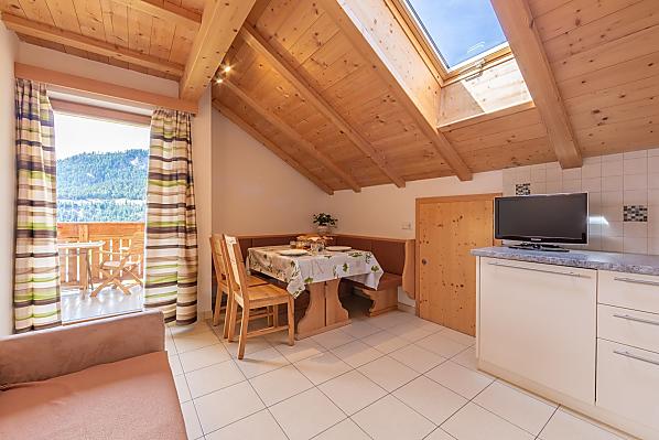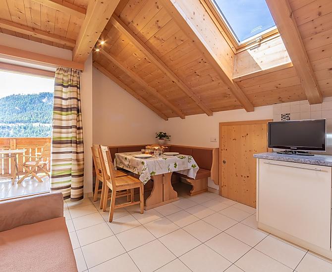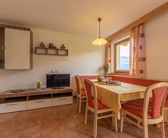 Hartelijk welkom op onze boerderij in St. Martin in Thurn, een klein dorpje in het Gadertal. Onze boerderij Gscnara ligt op een zonnige helling op 1450 meter hoogte en biedt een fantastisch uitzicht op de omliggende bergen, waaronder de Peitlerkofel en de Kreuzkofel. Temidden van weiden en bossen, ver weg van lawaai en verkeer, kunt u genieten van de rust en stilte van het landschap. Onze boerderij aan de Kronplatz is de ideale vakantiebestemming voor uw familievakantie in Zuid-Tirol.