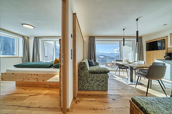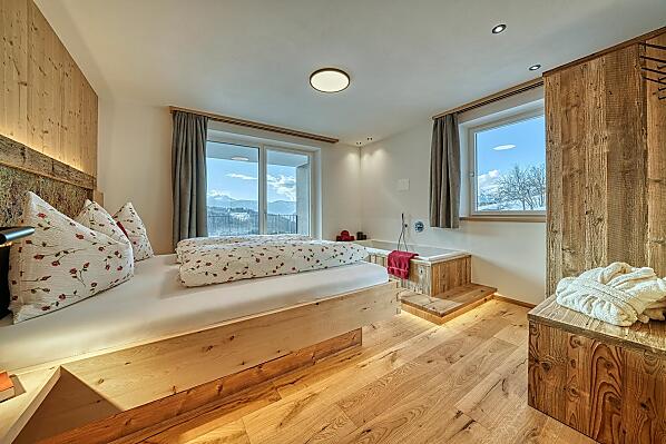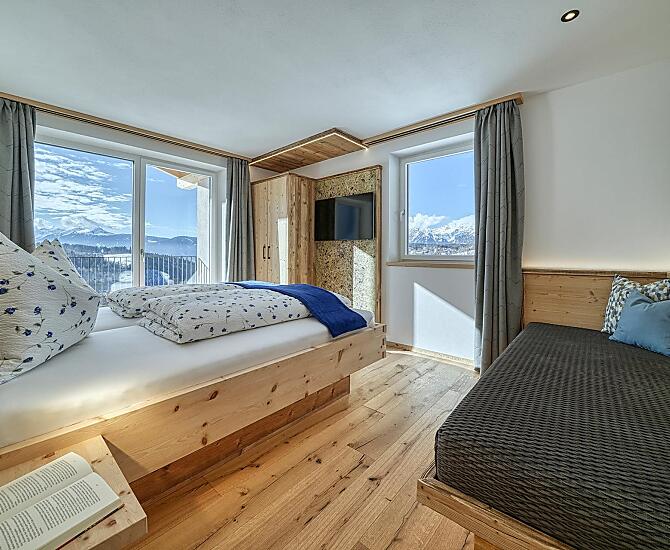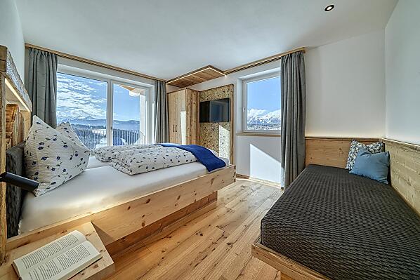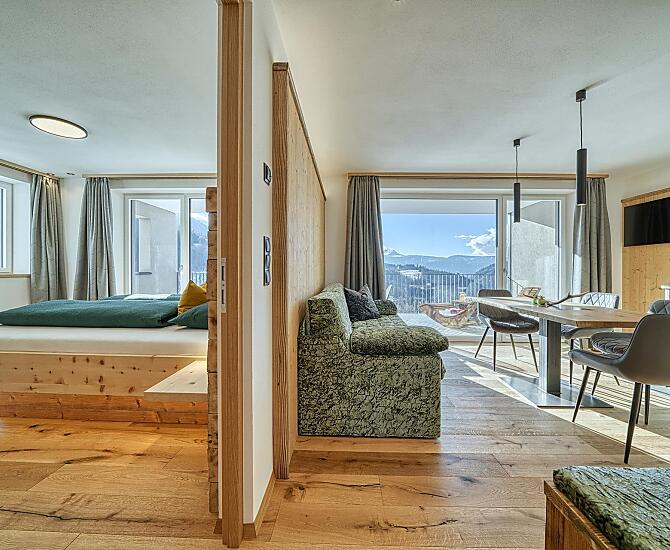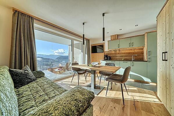 Onze boerderij ligt op 1.300 meter boven Meran, in het bergdorp Hafling, en biedt vakantie op de boerderij met exclusieve, moderne appartementen van lokaal hout. Elk appartement beschikt over een ruim, privé panoramaloggia met een vrij uitzicht over weiden, bossen en bergen. Wandel- en panoramaroutes starten direct voor de deur, en het skigebied Meran 2000 is in slechts 15 minuten met de auto te bereiken. In onze boerderijhoek ontdekken gasten huisgemaakte producten zoals honing van onze eigen imkerij, verse frambozen, eieren en meer – zo komt de natuur rechtstreeks op tafel. Een grote ligweide nodigt uit om te ontspannen of te spelen, en wie wil, geniet van private wellnessmomenten in het eigen appartement. Overal voel je de rust van de bergen, laad je nieuwe energie op en hervind je de verbinding met de natuur – een plek waar stilte, licht en bewuste levenskwaliteit samenkomen tot een onvergetelijke ervaring.