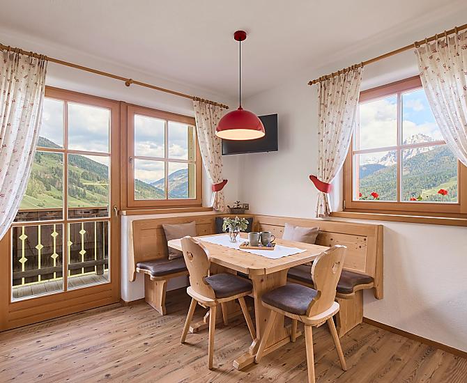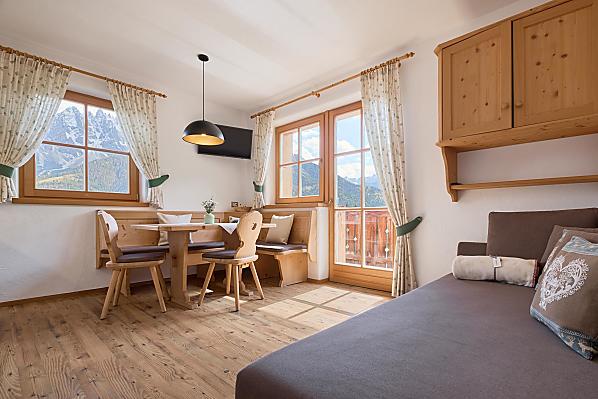 Op het balkon ademt u de zuivere berglucht in en bewondert u het prachtige panorama – pure vakantie, die zeker bijdraagt aan uw ontspanning. Rustig gelegen en toch dicht bij het centrum is deze plek ideaal voor wandelliefhebbers en sportieve gasten.