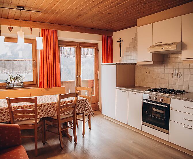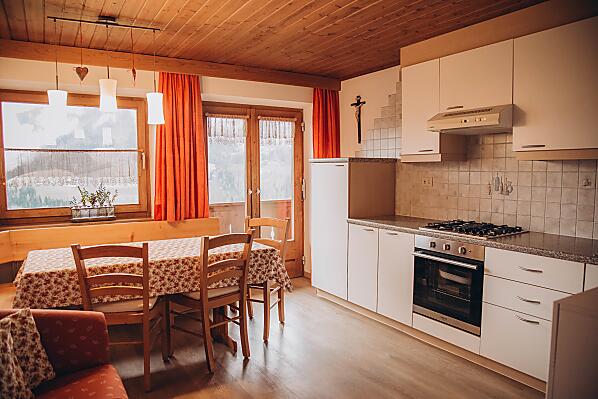 Het bevindt zich in een rustige omgeving, midden in het hart van de natuur. Tuin, stal, familie, dieren... er is veel te doen op de boerderij en er is voor ieder wat wils. U bent van harte welkom om mee te helpen! 's Avonds, na het melken, terwijl de kinderen ravotten op de speelplaats van de boerderij, hebben we tijd om samen met u te genieten van het uitzicht: op de Heiligkreuzkofel, de Rit, de Paresgroep, de Conturines en op La Val, het dorp aan de andere kant van het dal. Onze boerderij – omringd door het panoramische uitzicht – is simpelweg adembenemend. We willen u graag deze schoonheden laten ervaren.