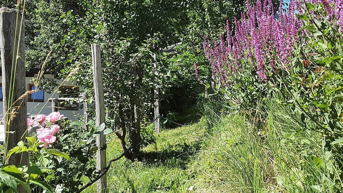 - fantastisch uitzicht op bloeiende weiden en overweldigende bergen