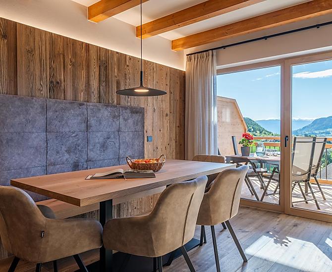 Bij ons op de Moarhof in Ums bij Völs am Schlern vind je precies wat je zoekt: boerderijleven om Zuid-Tirol in het ritme van de natuur te ervaren. Omgeven door weiden en bossen hebben we hier, op een zonnige en rustige locatie in de vakantiewereld Seiser Alm, twee nieuwe vakantieappartementen gecreëerd die je verblijf onvergetelijk maken. Naast onze gasten en de gastgezin wonen ook paarden, koeien, kippen en onze speelse hond Molly op de Moarhof. Boerderijmomenten voor het hele gezin, veel frisse lucht om diep in te ademen en een prachtig panoramisch uitzicht op het Schlernmassief en kasteel Prösels.