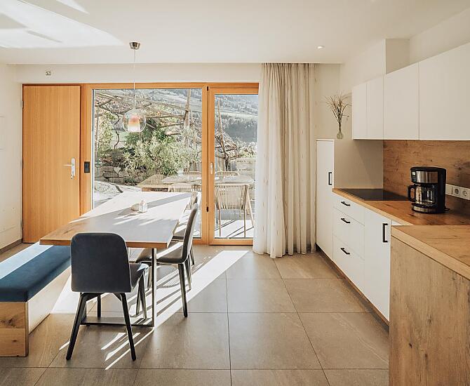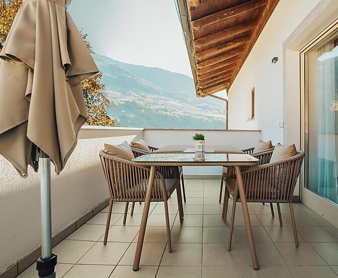 De Oberegghof ligt op een rustige, zonnige locatie, te midden van boomgaarden en wijngaarden, met een prachtig panoramisch uitzicht op de bergwereld van het Passeiertal.