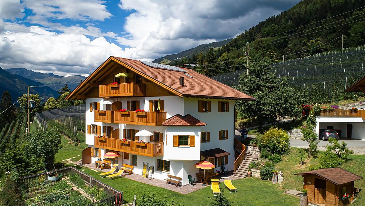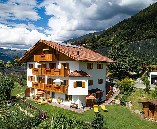 Ons fruitbedrijf ligt te midden van appelboomgaarden met een prachtig uitzicht op de omliggende bergen. Liefdevol en praktisch ingerichte appartementen bieden een gezellige sfeer. Door onze ligging boven de Meraner Talkessel is het makkelijk om Zuid-Tirool met al zijn wandelpaden en culturele hotspots te verkennen of om gewoon tot rust te komen. De beste voorwaarden voor een ontspannen en gevarieerde vakantie.