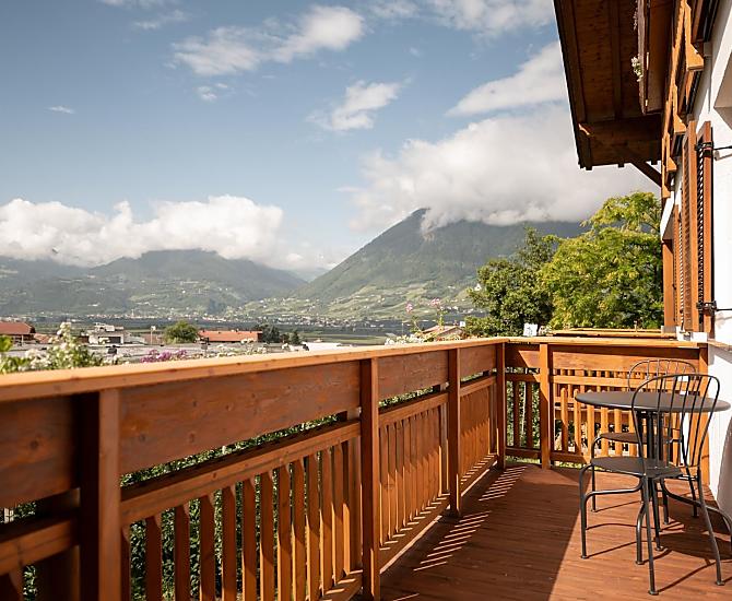 Een ontspannen sfeer, volop ruimte voor uw vakantieplannen en een grote verscheidenheid aan natuur- en cultuurerlebnissen helemaal naar uw wens: tijdens uw verblijf staan alle mogelijkheden voor u open. De gezellige vakantiewoningen direct op de boerderij liggen op een onverslaanbare locatie – midden in het groen en toch dichtbij de veelzijdige kuurstad Meran. Zo geniet u van rust en ontspanning, en vanaf het balkon van uw vakantiewoning heeft u een adembenemend uitzicht over het Meraner Becken en de omliggende bergen. Tegelijkertijd bereikt u eenvoudig de vele populaire uitstapjes in de regio: van het ski- en wandelgebied Meran 2000, via de tuinen van kasteel Trauttmansdorff, tot aan de charmante binnenstad van Meran.