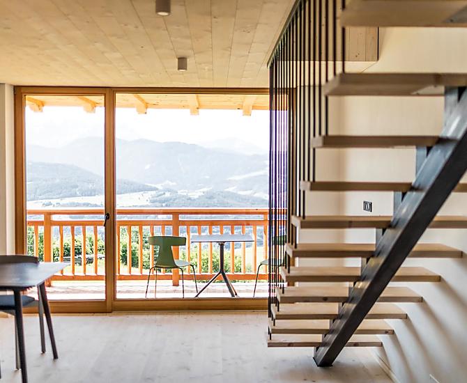 Boerderij-idylle en modern alpien wonen gaan hand in hand op de Obersteinerhof. Gelegen op een rustige en zonnige locatie op het Rittner Hochplateau, beleef je een natuurverblijf op de 600 jaar oude boerderij. De drie vakantiewoningen met moderne ambiance strekken zich elk over twee verdiepingen: Ze hebben ruime open keukens met grote panoramische ramen en balkons op het zuiden op de onderste verdieping en gezellige grenen slaapkamers onder het dak. In plaats van een rustieke inrichting is de verbondenheid met de regio duidelijk zichtbaar in het gebruik van lokale materialen en hedendaags Zuid-Tirools design. Het hout voor het meubilair komt uit het eigen bos van het hotel en in de badkamers is Zuid-Tiroler porfier gelegd. Beleef het leven in de Alpen op een nieuwe manier.