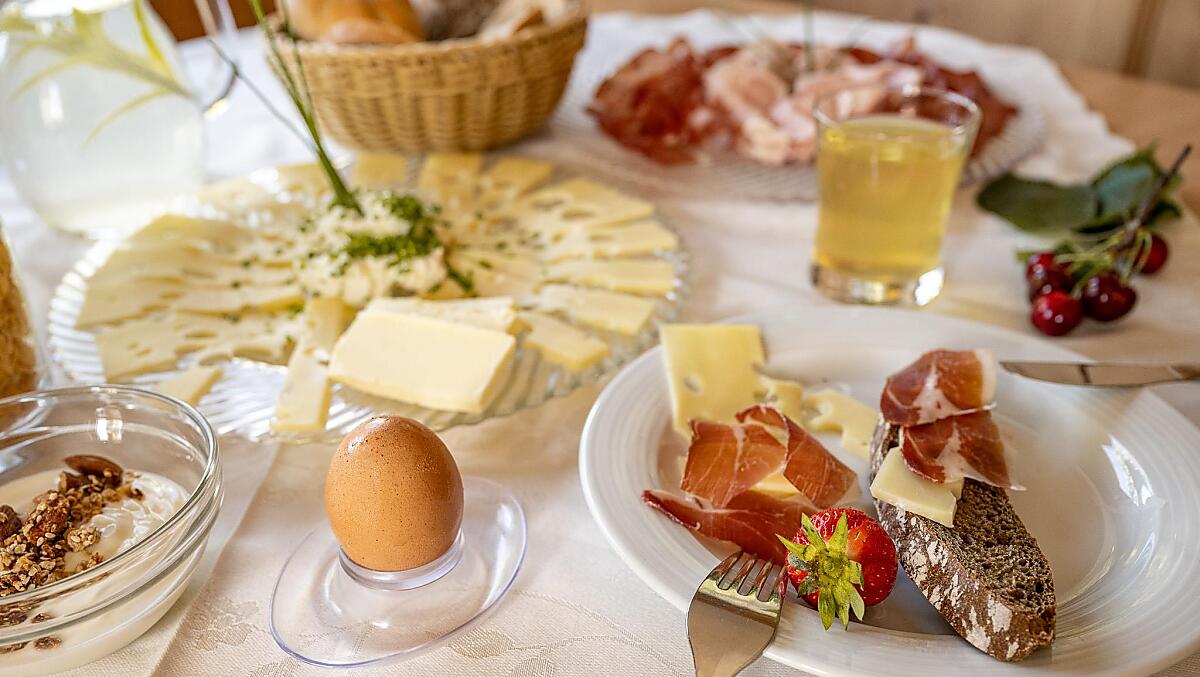 - Boerderijproducten bij het ontbijt: melk, yoghurt, kaas, eieren, vruchtenspreads, siroop, vruchtensappen, gedroogd fruit, kruidenthee, kruiden , granen, brood en banket, verse groenten van het seizoen, vers fruit naargelang het seizoen