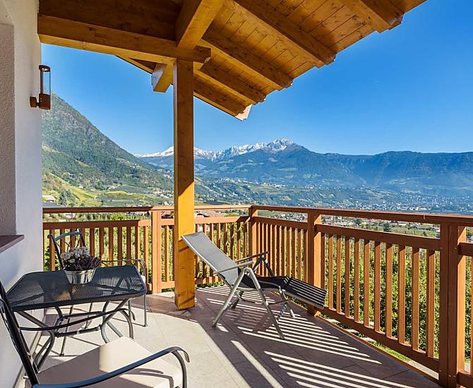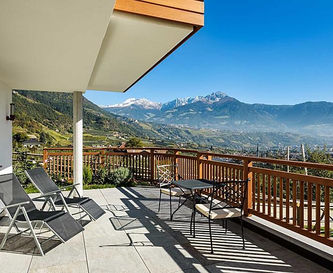 Zuid-Tirool - Vakantie in een zonnige panoramische ligging aan de voet van het natuurpark Texelgruppe. Hedendaags, natuurlijk leven in biologische vakantiewoningen, ontspannen bij het zwembad, wandelen en fietsen direct vanaf de boerderij. Authentiek en gezinsvriendelijk. Honden zijn welkom.