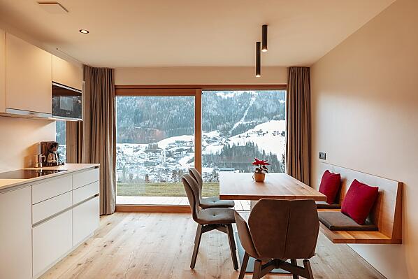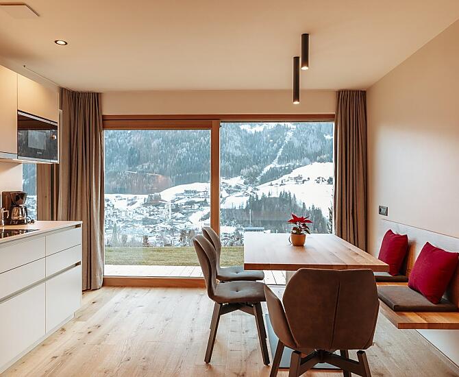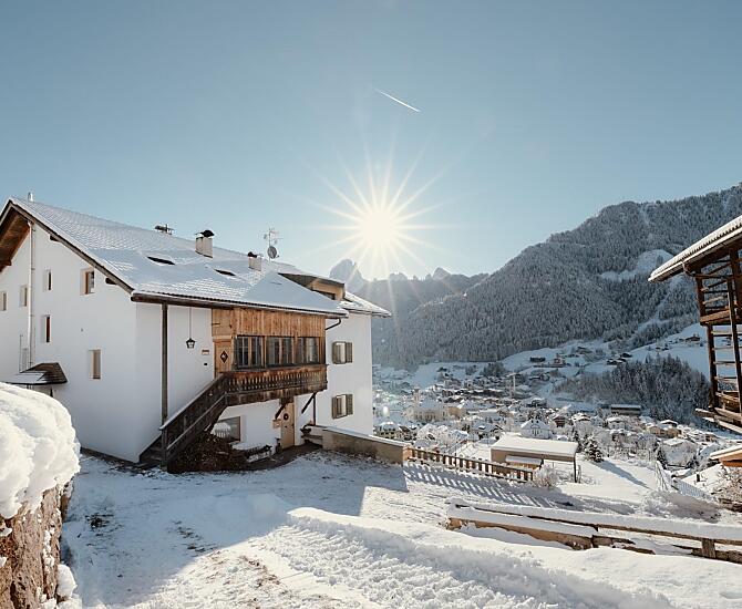 Onze boerderij is prachtig gelegen, aan de zonnige kant van het dorp met een schitterend panoramisch uitzicht. De skiliften en het dorpscentrum zijn te voet in enkele minuten bereikbaar, en de ligging is het ideale vertrekpunt voor wandelingen, fietstochten en skitochten. De halte van de ski- en stadsbus bevindt zich direct bij de boerderij. De moderne en met zorg ingerichte vakantiewoningen, samen met de ruime ligweide, nodigen uit om heerlijk te ontspannen. We hechten veel waarde aan duurzaamheid: onze appartementen worden voorzien van hernieuwbare energie via zonnepanelen en een warmtepomp.