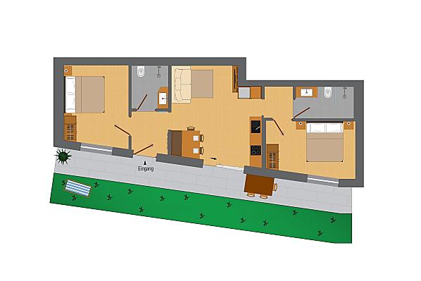 2-5 personen (4 vaste bedden) 57m²