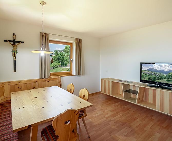Een idyllische bergboerderij op een onvergetelijke panoramische locatie. Onze nieuwe, liefdevol ingerichte vakantiewoningen nodigen stellen en gezinnen uit om te ontspannen van de stress van alledag. Het grote aandeel hout in de inrichting geeft u een gezellig thuisgevoel waardoor u zich weer kunt opladen. Onze boerderij ligt te midden van weilanden en bossen. Weg van de grote drukte, maar toch heel centraal, vindt u ons het perfecte vertrekpunt voor diverse activiteiten. Een actieve vakantie, het ontdekken van de Zuid-Tiroolse cultuur en tradities of een ontspannende vakantie - dit alles is bij ons mogelijk. Met de bushalte direct voor het huis kunt u zonder zorgen de omgeving verkennen. De Völser Weiher (natuurlijke vijver) biedt de perfecte verkoeling op warme zomerdagen of schaatsen in de winter en wordt bereikt na een mooie wandeling van 20 minuten.
