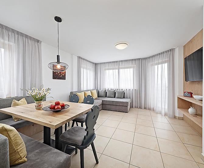 Midden tussen de boomgaarden op ongeveer 620 meter boven zeeniveau ligt onze Fruit- en Vakantieboerderij Schattmair op een rustige locatie. Geniet bij ons van de natuur, de rust en de gastvrijheid van Zuid-Tirol. Onze kindvriendelijke boerderij in Dorf Tirol biedt ruime vakantiewoningen met terras of balkon. Op onze boerderij kunt u tijdens een rondleiding de boerderijervaring van dichtbij meemaken, heerlijke boerderijproducten proeven en ontspannen in de tuin met verwarmd zwembad (7 x 17 m) en bubbelbad in de buitenlucht. De kinderen kunnen zich vermaken op een grote speelplaats en volop van de natuur genieten om te spelen en te ontdekken. Ook voor uw maaltijden wordt gezorgd. Op verzoek kunt u gebruikmaken van onze dagelijkse broodjesservice (of ontbijtmand).