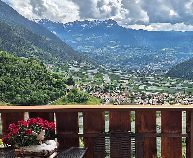 Onze boerderij is slechts 2,5 hectare groot en we hebbeneen paar koeien en geiten. Bovendien ligt het op een fantastische panoramische plek op de Partschinser Sonnenberg. Omgeven door weilanden en bossen biedt onze boerderij de ideale omstandigheden voor de teelt van bessen, fruit en groenten. Onze familieboerderij kijkt terug op een lange traditie, de Schönleithof werd al in 1125 gebouwd. Sinds 1977 biedt onze oma Emma kamers met ontbijt aan. In 2004 werd onze boerderij gerenoveerd met 5 kamers. De unieke, gezellige kamers en de oude opkamer - daterend uit 1835 - nodigen u ook uit om te genieten van een onvergetelijk ontbijt.