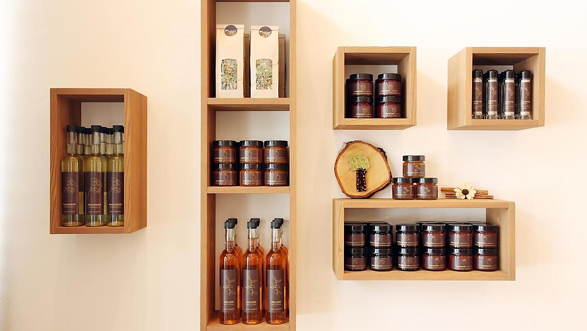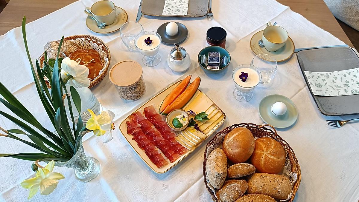 - Boerderijproducten bij het ontbijt: melk, yoghurt, eieren, honing, vruchtenspreads, siroop, kruidenthee, kruiden
