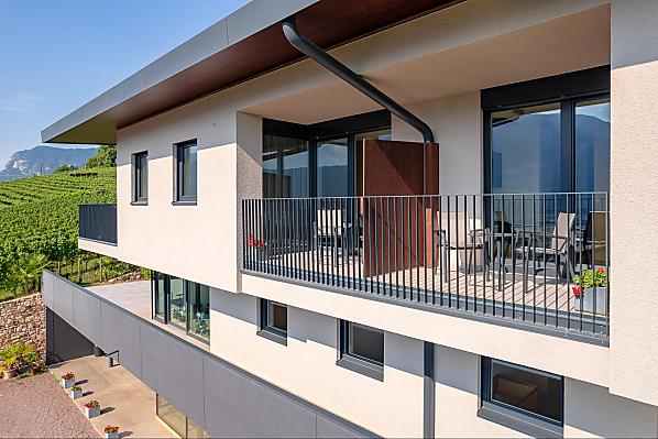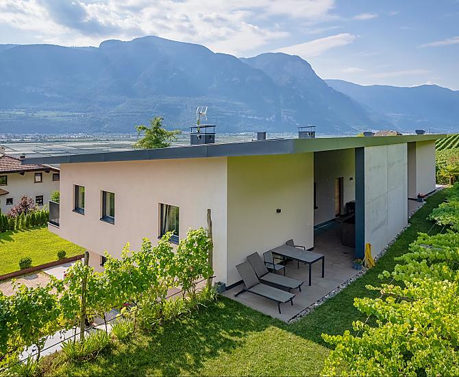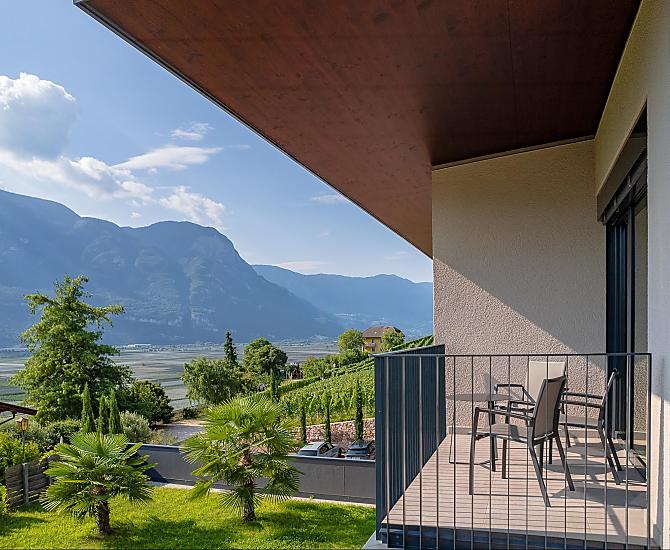 De Tholr Hof is een nieuw gebouwde boerderij met vijf exclusieve vakantiewoningen die een moderne vakantie bieden op een mediterrane panoramische locatie midden tussen de wijngaarden en in de regio van de Kalterer See op een centrale plaats in het Zuid-Tiroolse Unterland. In het Klimahaus wachten ruime vakantiewoningen op u, zodat u zich thuis voelt. Wij zijn een fruit- en wijnbouwbedrijf, waar we met ons eigen gezin werken. Tholr, zoals onze achternaam in het Zuid-Tiroler dialect heet, komt van onze achternaam Thaler, dat zijn wij, Elfriede, Norbert, Michi en Willi Thaler. U heeft de beste mogelijkheden om te wandelen, fietsen, zwemmen, voor uitstapjes naar de Dolomieten, naar het Gardameer, om te winkelen in Bozen en Meran, evenals goede verbindingen met het openbaar vervoer.