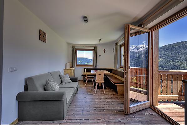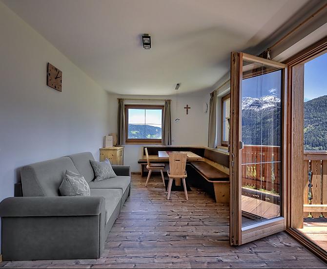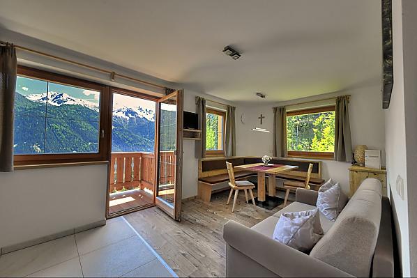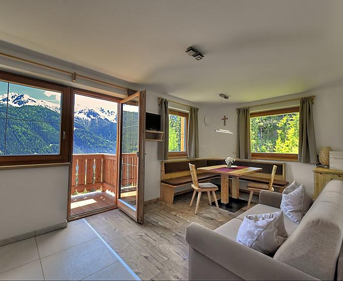 Aan de zonnige kant van het dal van Ulten, op een kleine verhoging niet ver van de dorpskern van St. Walburg, ligt onze kleine bergboerderij.