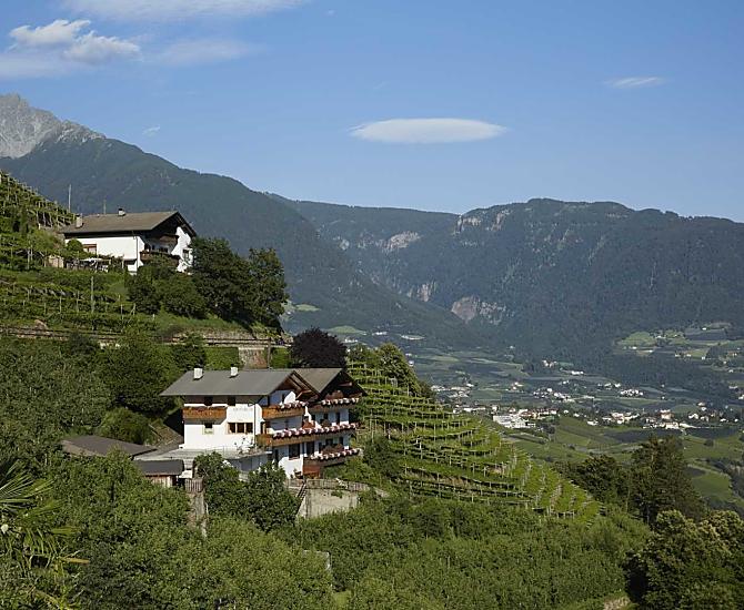 Onze boerderij ligt boven de kuurstad Meran, te midden van het groen, omringd door boomgaarden en wijngaarden. Met een prachtig uitzicht over het Etschtal en de Vinschgau. Onze boerderij is omgeven door tal van bezienswaardigheden en is een ideaal vakantieoord voor rustzoekers en wandelaars.