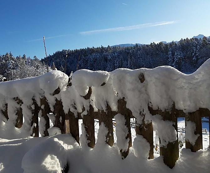 Onze bergboerderij met veel dieren ligt op 1.250 meter midden in de weiden en bossen en aan het einde van een weg. De halte van de Rittner tram is op slechts een paar minuten lopen afstand (geen lawaai). Het Wolfsgrubener See (een zwemmeer in de zomer en een schaatsbaan in de winter) is snel te voet bereikbaar. Ook de zwembaden van Klobenstein en Oberbozen zijn goed bereikbaar met het openbaar vervoer binnen een paar minuten lopen.