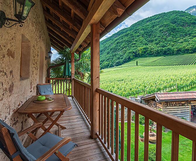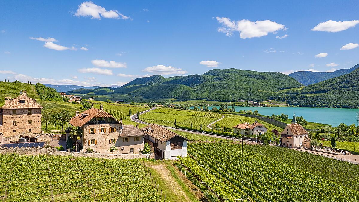 Gerenoveerde middeleeuwse boerderij te midden van wijngaarden, op 10 minuten lopen van het meer van Kaltern met eigen Buschenschänke en wijnkelder.