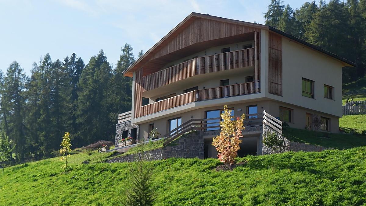 Een prachtig bergpanorama gecombineerd met ongerepte natuur, zo presenteert de Wolfhof zich op de Ritten boven Bozen. Ver weg van lawaai en drukte genieten mensen van hun vakantietijd, bewegen ze zich in de vrije natuur, observeren ze wilde dieren en laten ze zich inspireren door kleurrijke bergbloemen en luisteren naar het vogelgezang. Sprookjesachtig mooi is het avondlijke kleurenspel op de bergtoppen van de Dolomieten. Nieuwgebouwde, natuurlijk ingerichte vakantieappartementen bieden de gasten een ontspannen vakantietijd.