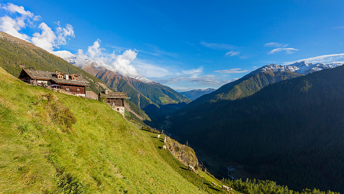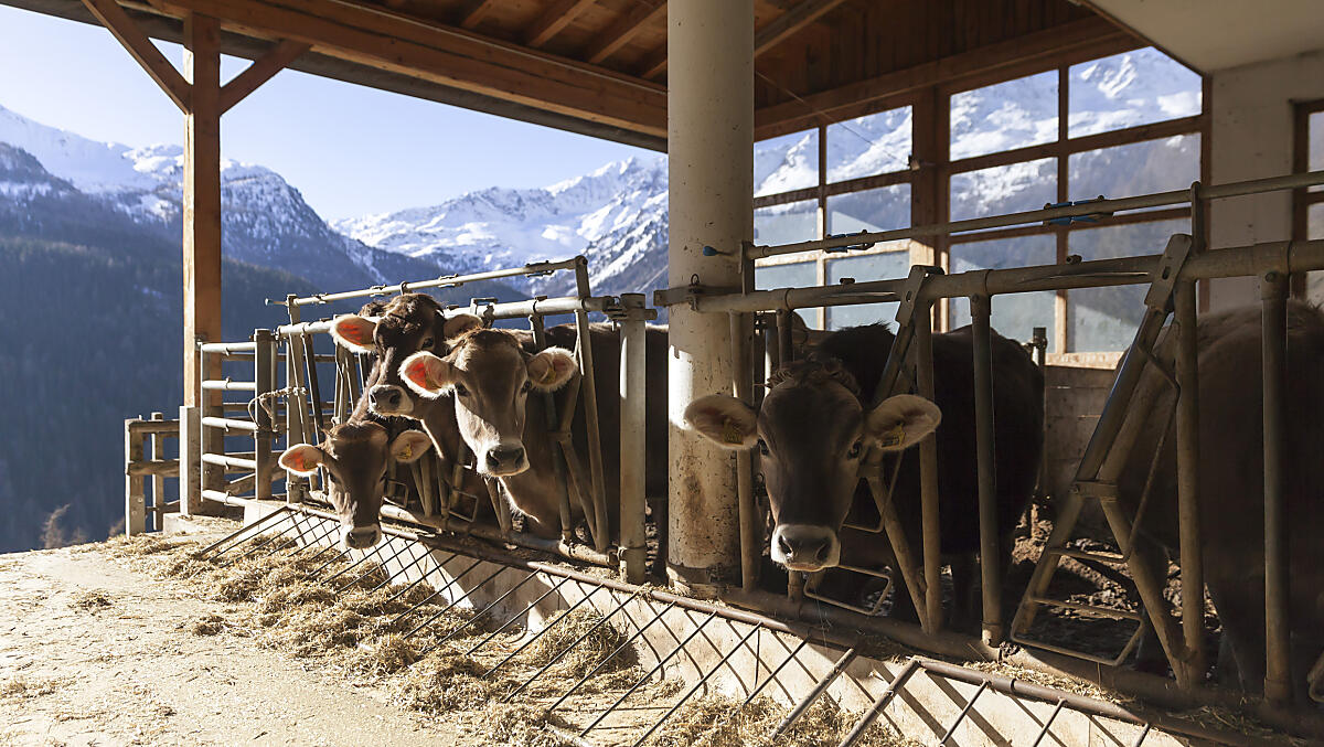Wie zegt dat alleen vakantiegangers van een geniaal uitzicht houden? Op veel boerderijen in het Ultental genieten ook de koeien van frisse berglucht en vrij uitzicht op imposante toppen.