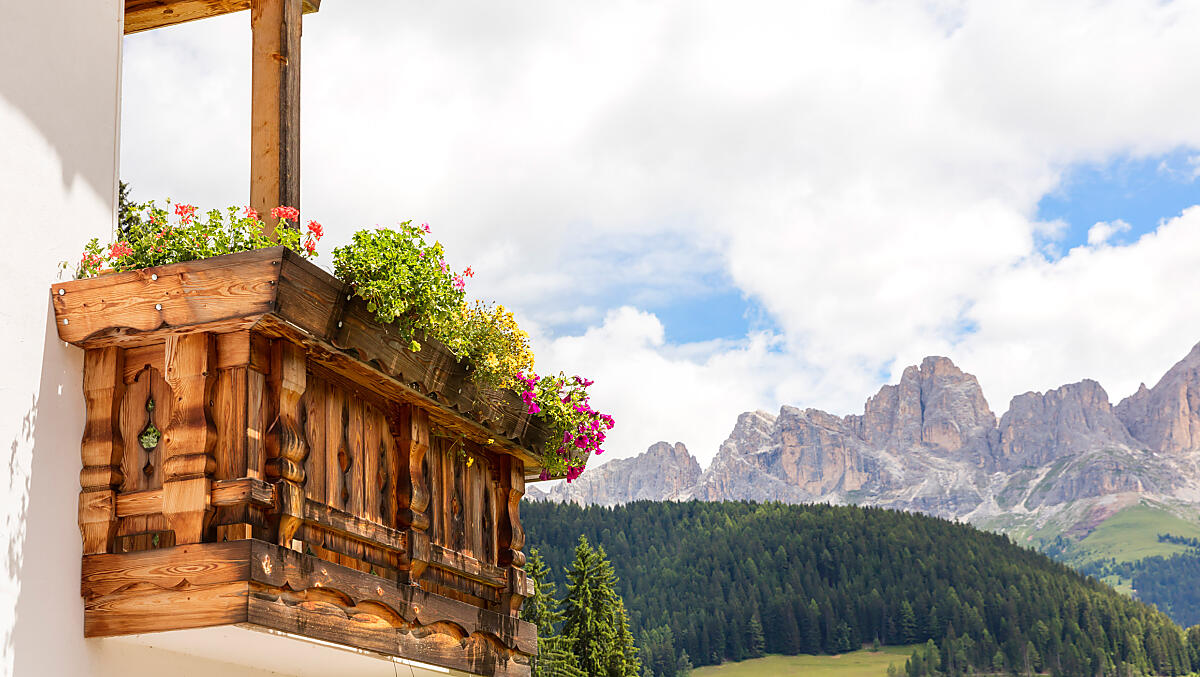 Een met bloemen versierd balkon en een majestueus uitzicht lijken hier met elkaar te wedijveren: in Welschnofen vloeien natuur en weidsheid samen tot een indrukwekkend geheel.