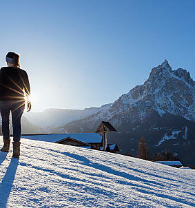 In het Villnösstal geniet je van een vrij uitzicht op de imposante Geislerspitzen. Lekker ingepakt in een warme deken, met een dampende punch in je hand, kom je in de winterzon helemaal tot rust.